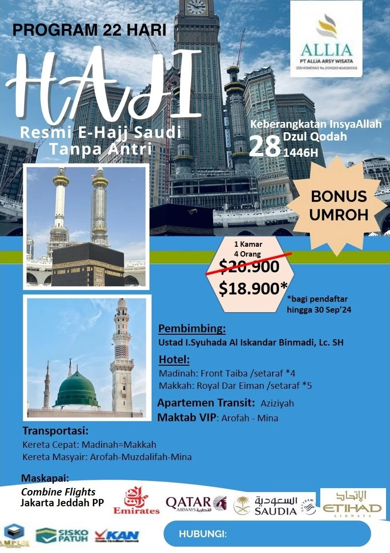 Tahun ini, paket haji tersedia dengan harga $18.000, termasuk berbagai fasilitas menarik. Salah satu fitur menarik dari paket ini adalah bonus umroh gratis, yang memberi jemaah kesempatan untuk beribadah lebih banyak sebelum atau sesudah haji