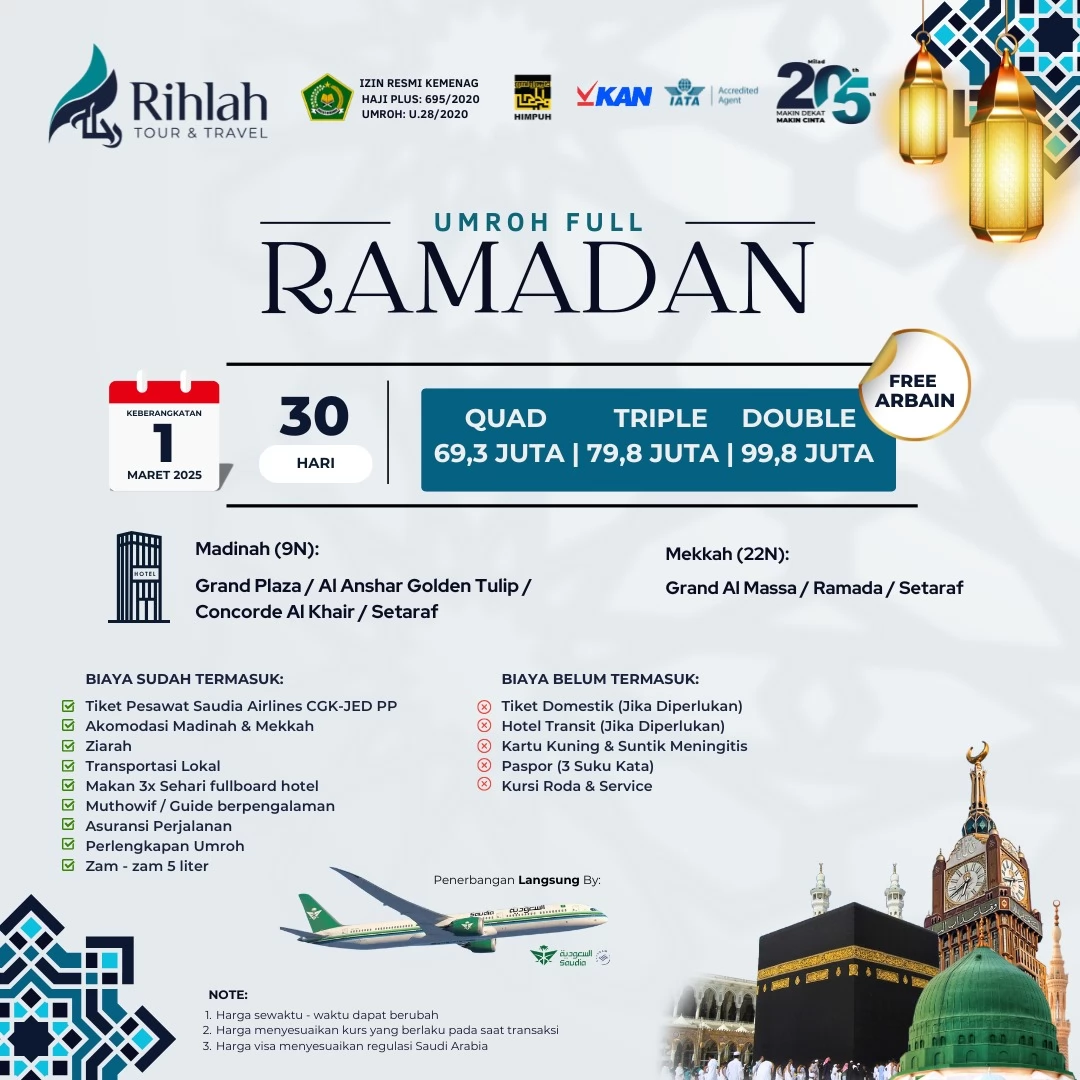 UMROH FULL RAMADHAN 30 HARI BERANGKAT 1 MARET 2025