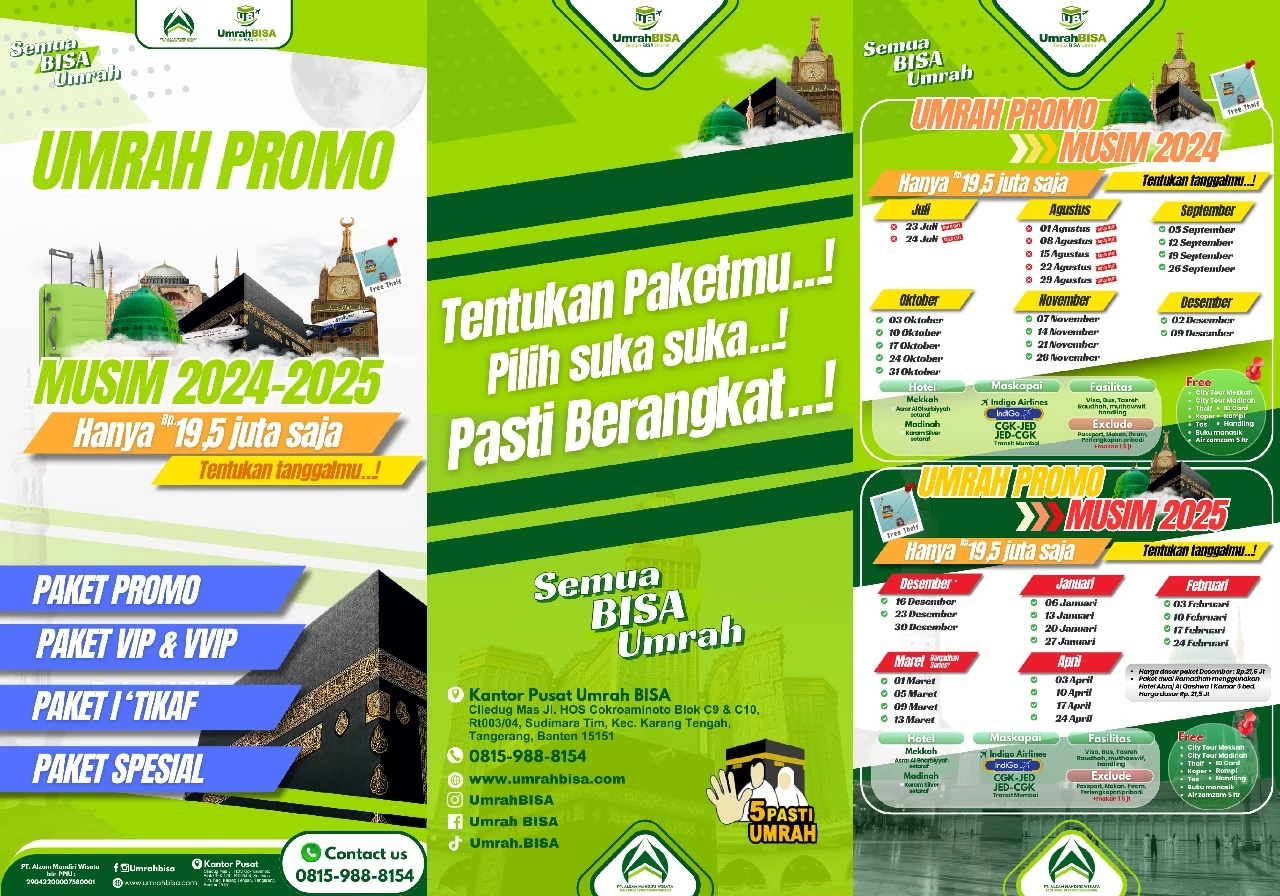 Paket umroh Travel Al Zam mencakup opsi promo, regular, privat, hingga spesial, disesuaikan untuk memenuhi kebutuhan dan anggaran