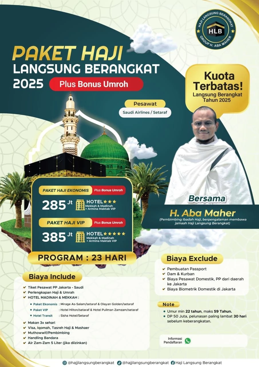 Kami persembahkan *Paket Haji Langsung Berangkat 2025* dengan layanan dan fasilitas terbaik untuk calon jemaah.