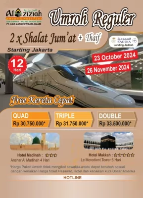 Periode Umroh: 12 Hari yang Penuh Berkah dan Kesempatan Selama 12 hari, paket umroh ini memberikan waktu yang memadai untuk melaksanakan semua ibadah umroh secara khusyuk. Anda akan dapat melakukan tawaf, sa’i, doa di lokasi suci, dan juga memiliki waktu untuk istirahat serta melakukan ziarah tambahan jika diperlukan