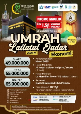 Layanan umroh PT Pradana Grasindo dikenal dengan standar pelayanan tinggi yang memberikan kepuasan maksimal kepada jamaah 1. Umroh Maulid Thaif dan Laut Merah - Rp 38 Juta