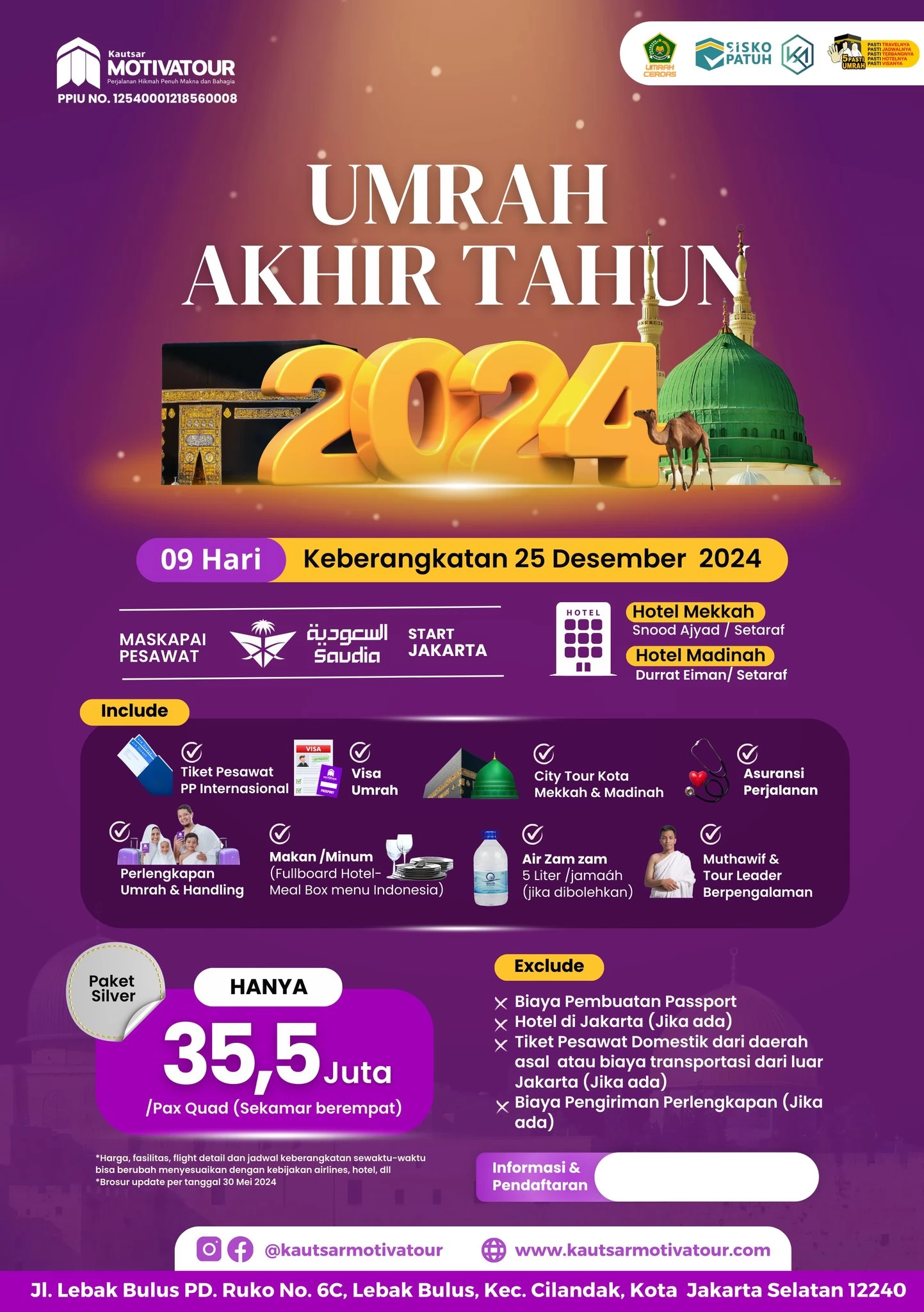 Umrah akhir tahun merupakan momen istimewa bagi banyak umat Muslim, terutama yang berangkat pada 25 Desember 2024 dari Jakarta dengan Saudia Airline. Perjalanan ini menawarkan kesempatan beribadah di Tanah Suci saat libur panjang. Saudia Airline dikenal dengan layanan terbaiknya, menjadikan perjalanan nyaman dan penuh berkah. Dengan cuaca yang lebih sejuk, jamaah bisa menjalankan rangkaian ibadah umrah dengan lebih khusyuk. Jangan lewatkan kesempatan ini untuk meraih pahala dan pengalaman spiritual yang mendalam di penghujung tahun. Nikmati perjalanan nyaman dengan maskapai Saudia Airlines dan layanan terbaik selama 9 hari.