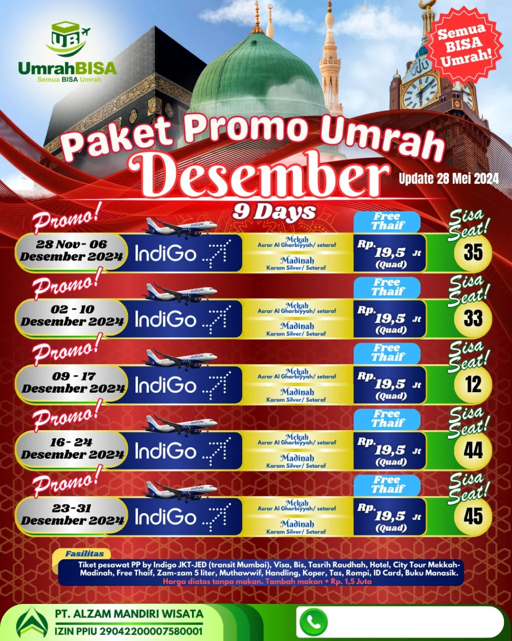 Paket promo dan regular dari Travel Al Zam menjadi pilihan favorit bagi mereka yang mengutamakan nilai terbaik dan kualitas dalam pengalaman umroh mereka