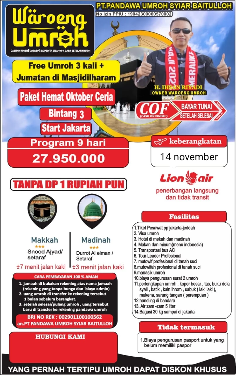 - Gratis umroh 3 kali dan jumatan di Masjidilharam.